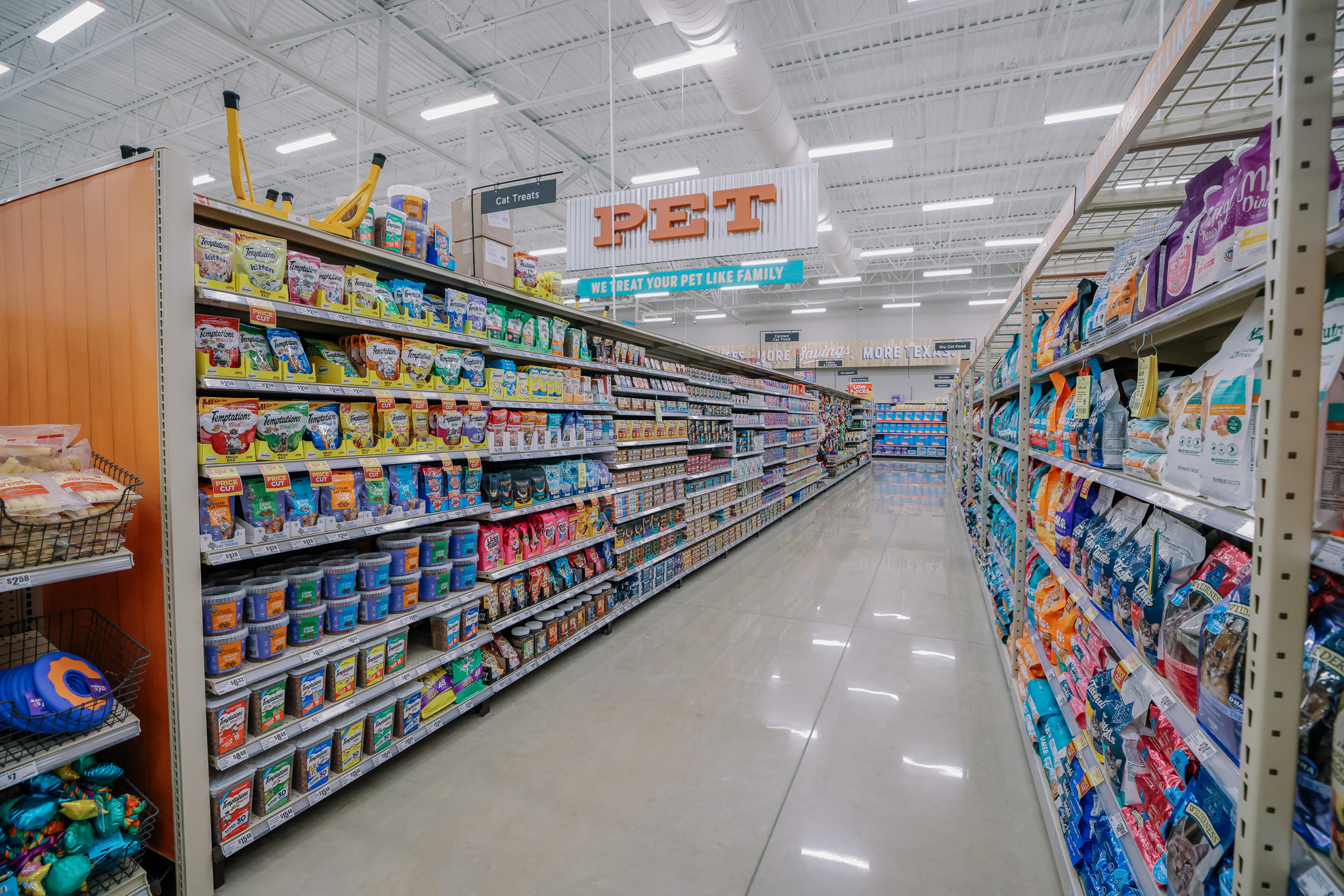 - Pet department featuring Heritage Ranch by H-E-B pet food, as well as fun toys and treats for all your furry friend’s needs