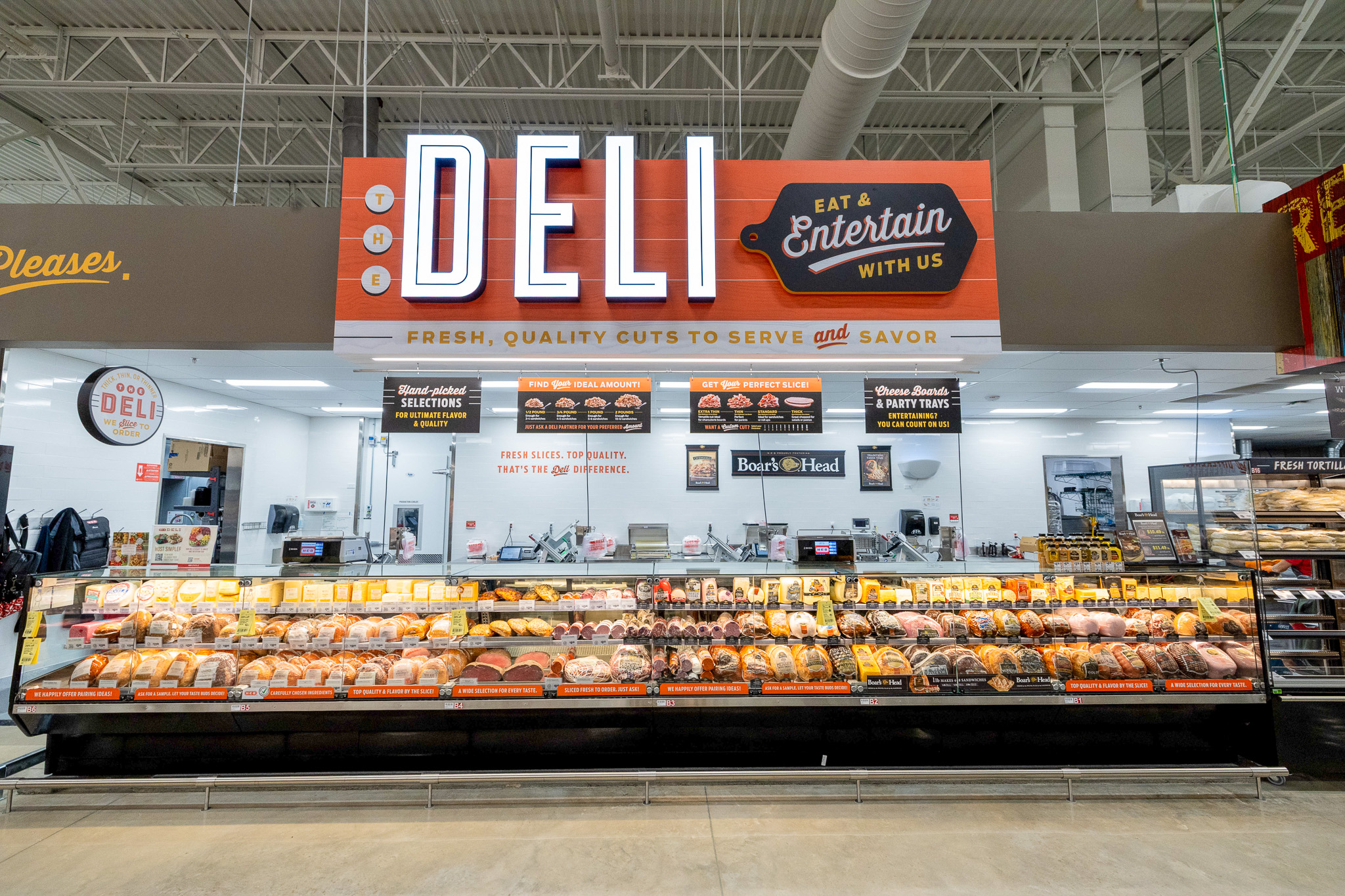 - Expansive Deli featuring a wide variety of prepared foods and fresh-sliced meats and cheeses. Additionally, you can find custom-made party tray options for any occasion.