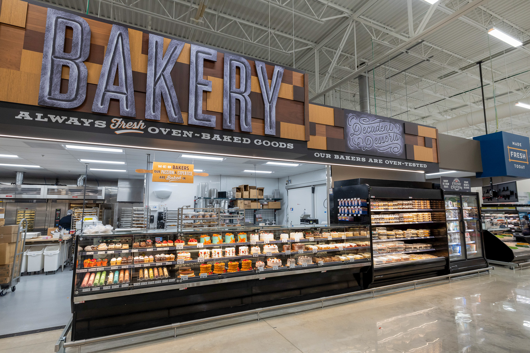 - Warm H-E-B Bakery desserts, including cookies, brownies, pies, and more