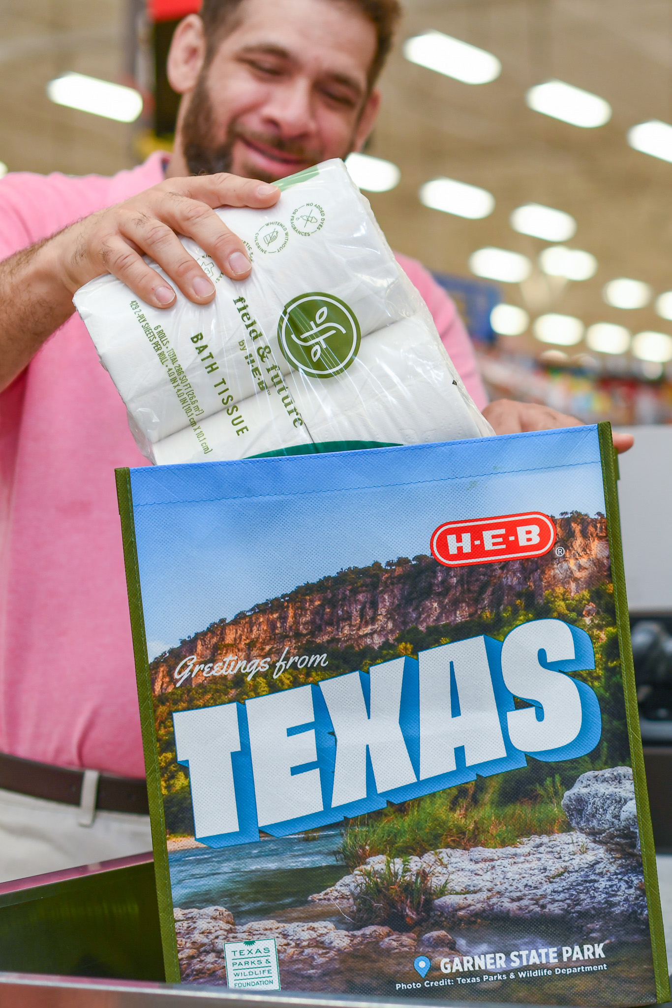 This year, the bag features Garner State Park, which is situated along the Frio River. This design is the third and final installment in a three-year series that featured state parks in Texas. For $1.50, customers can purchase additional Earth Day reusable bags, which are mostly made from ocean-bound plastic, which is plastic waste at high risk of entering the ocean from where it was recovered.