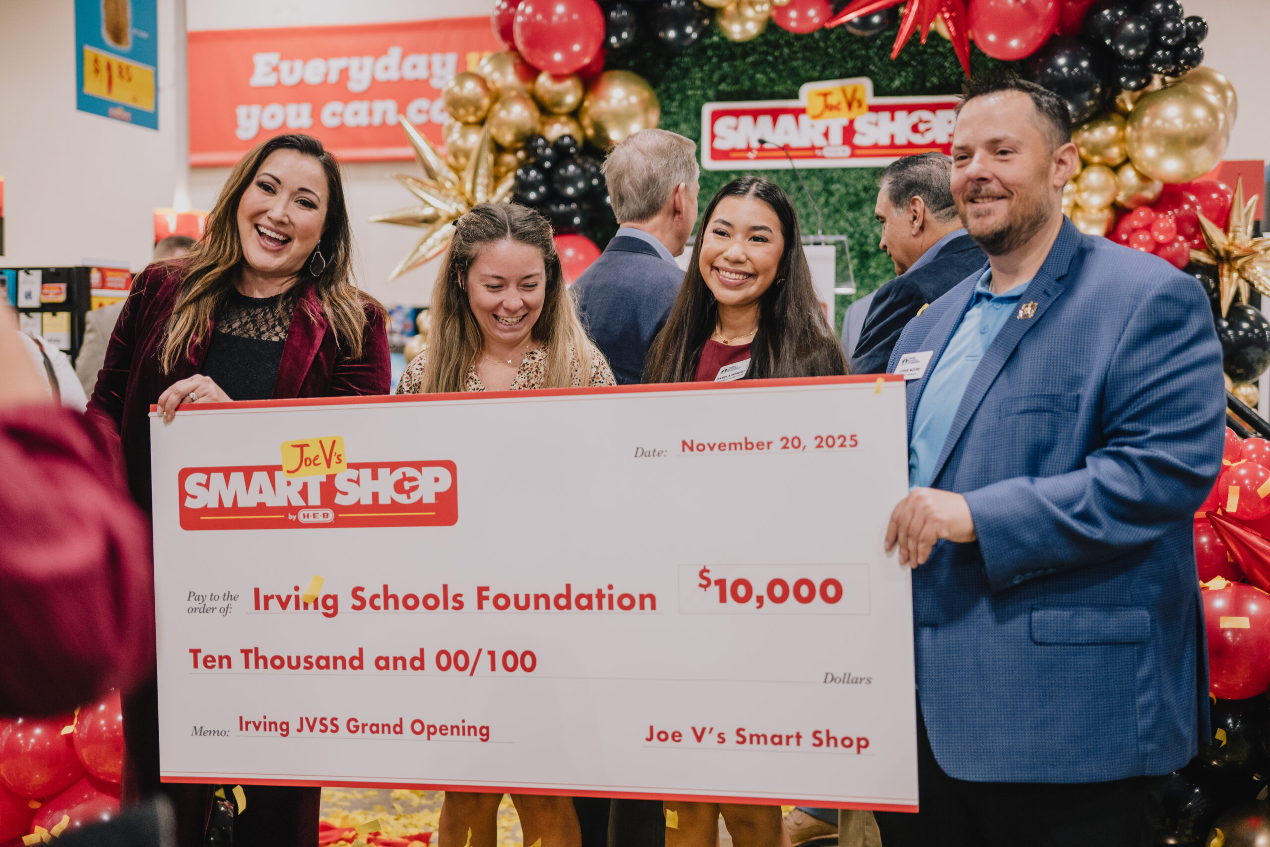 In honor of the grand opening and company’s spirit of giving, Joe V’s Smart Shop announced gifts that total $20,000 to area nonprofits with $10,000 each going to support Irving Cares and Irving Schools Foundation. In celebration of the store’s opening, Joe V’s Smart Shop also donated a book vending machine to Johnston Elementary School in Irving. The vending machine is stocked with free books for elementary-age learners.